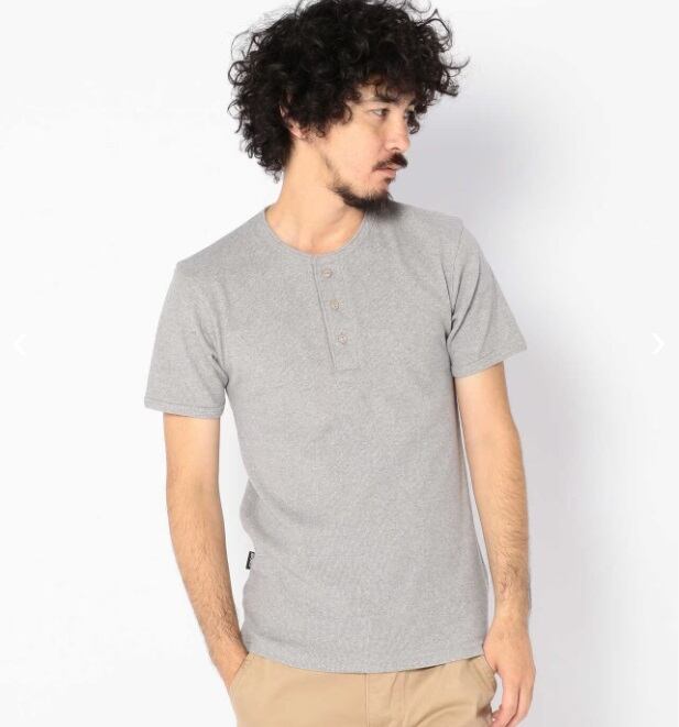 AVIREX 《DAILY》RIB S/S HENLEY NECK T-SHIRT グレー /リブ 半袖 ヘンリーネック Tシャツ デイリーウェア